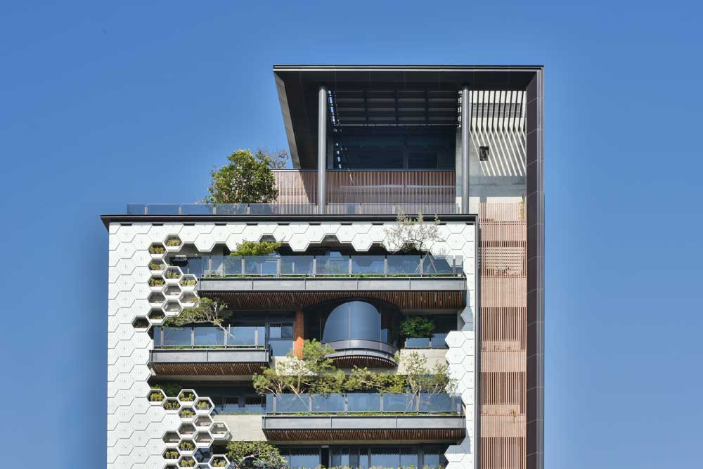 連結人與自然的感知重塑建築異托邦「丰二三」揚棄傳統辦公大樓墨守成規的密閉式玻璃帷幕設計,透過對「風、光、水、綠」設計元素的想像與轉譯,讓空間更具無限想像。這裡有流動的風、通透的光、清潺的水、有氧的綠,提供辦公營運及藝文推廣的優質空間。